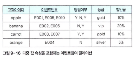 - 이벤트 참여 릴레이션을 두 개의 릴레이션으로 나누면 등급과 할인율 속성에 대한 데이터 중복이 줄어든다.
