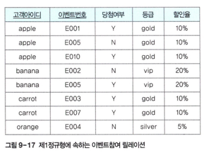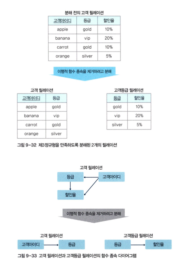- 고객 릴레이션은 기본키인 고객아이디가 등급을 직접 결정하므로 제3 정규형에 속한다.