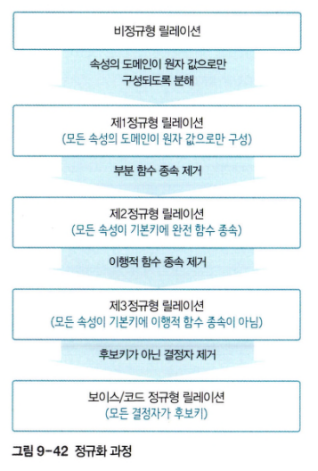 - 정규화는 이상현상이 발생하지 않도록 릴레이션을 분해하는 과정이다.