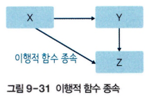 - 이때 속성 집합 Z가 속성 집합 X에 이행적으로 함수 종속되었다고 한다.