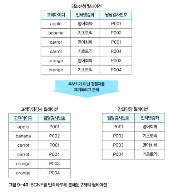 - BCNF 정규형에 속하지 않은 릴레이션은 이상현상이 발생할 수 있다.