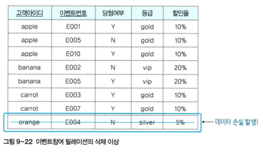 - 삭제 이상 : 이벤트 참여 기록을 삭제하면 고객 정보도 함께 삭제된다.
