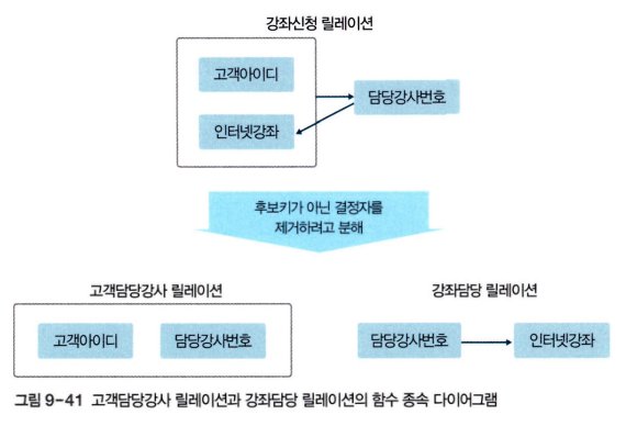 - 정규화를 수행하기 전에 릴레이션을 구성하는 속성들 간의 관련성인 함수적 종속성을 판단해야 한다.