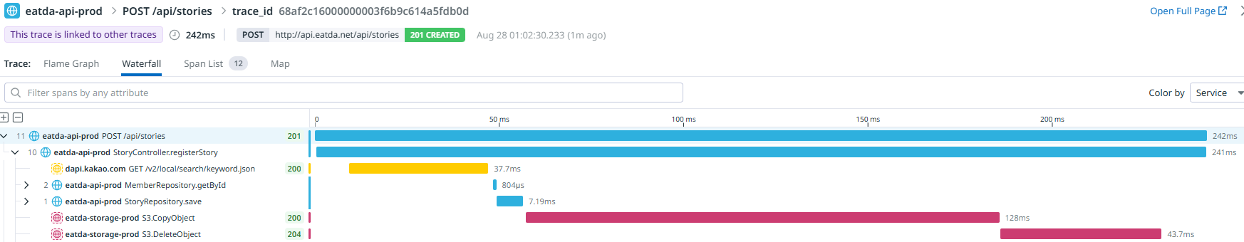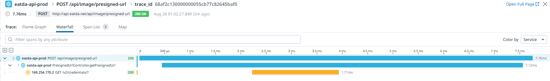 최초 Pre-signed URL 요청부터 최종 게시까지 총 300ms 이내로 나가는 것을 확인할 수 있었습니다.