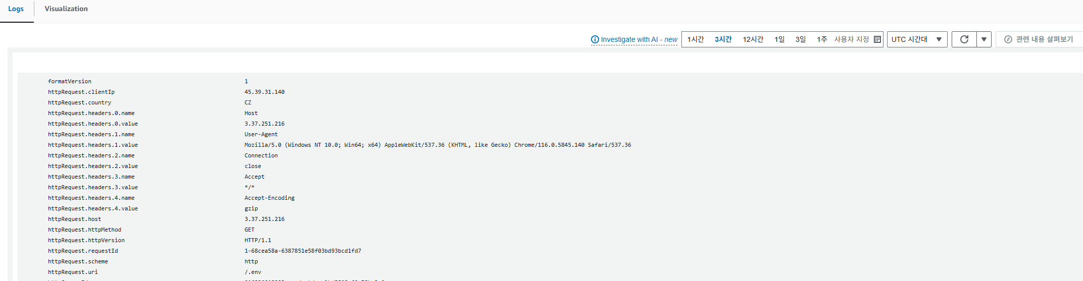 더 심각한 문제는 .env, api/.git/config 등 민감한 설정 파일에 대한 무차별 대입 공격도 함께 진행되고 있다는 점이었습니다.