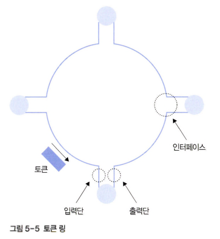- 토큰링은 순환 구조의 전송 매체와 점대점 방식으로 이루어지며 이를 링 인터페이스라 한다.